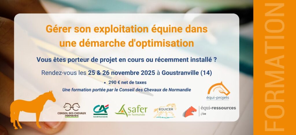 Équi-Projets organise une nouvelle session de la formation : « Gérer son exploitation équine dans une démarche d’optimisation » avec le Conseil des Chevaux de Normandie, Equicer et le Crédit Agricole de Normandie.